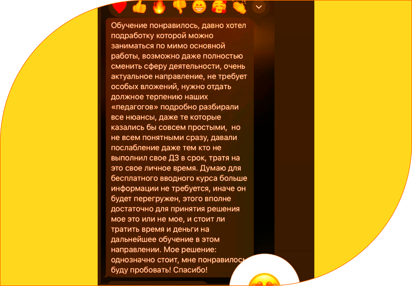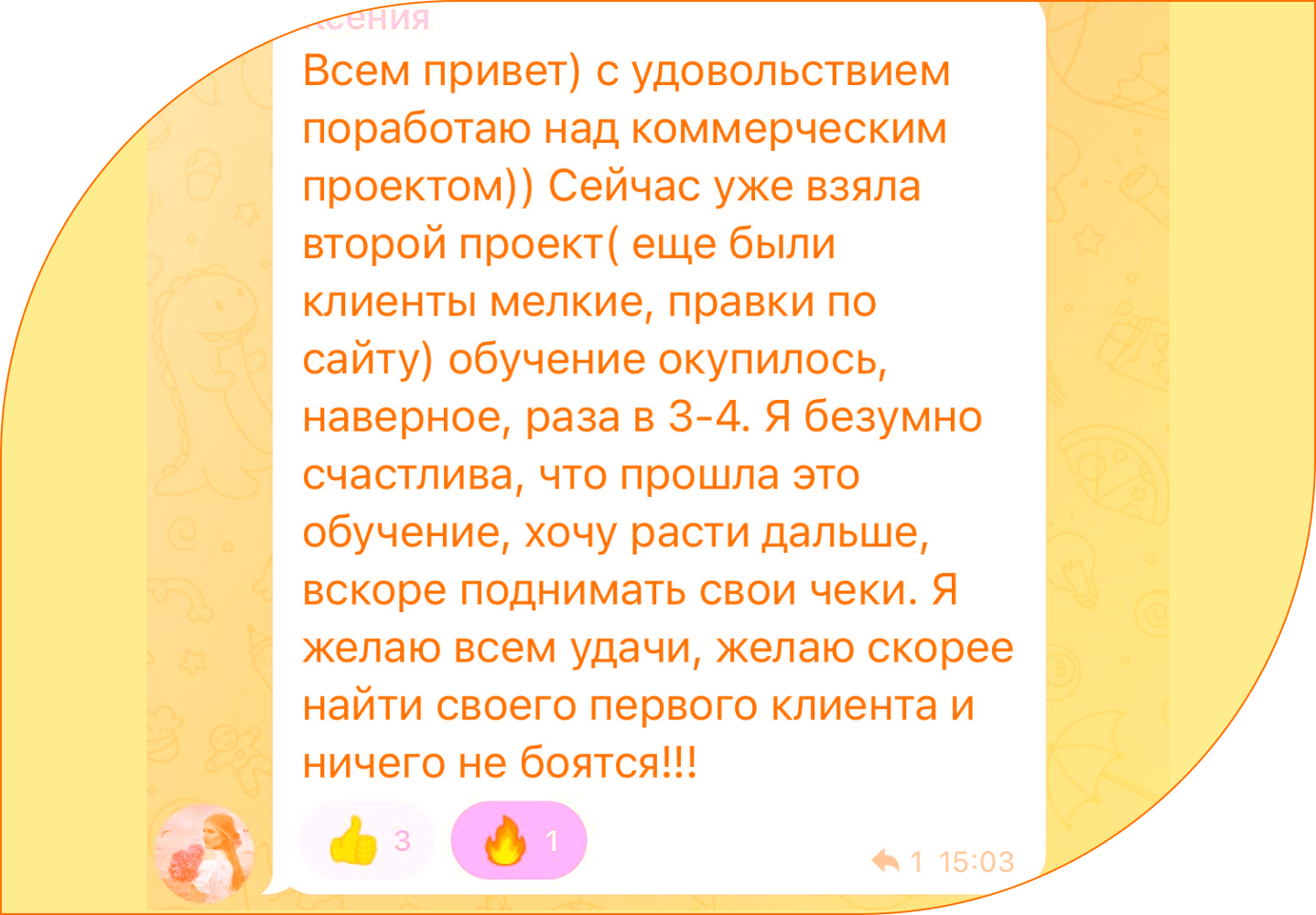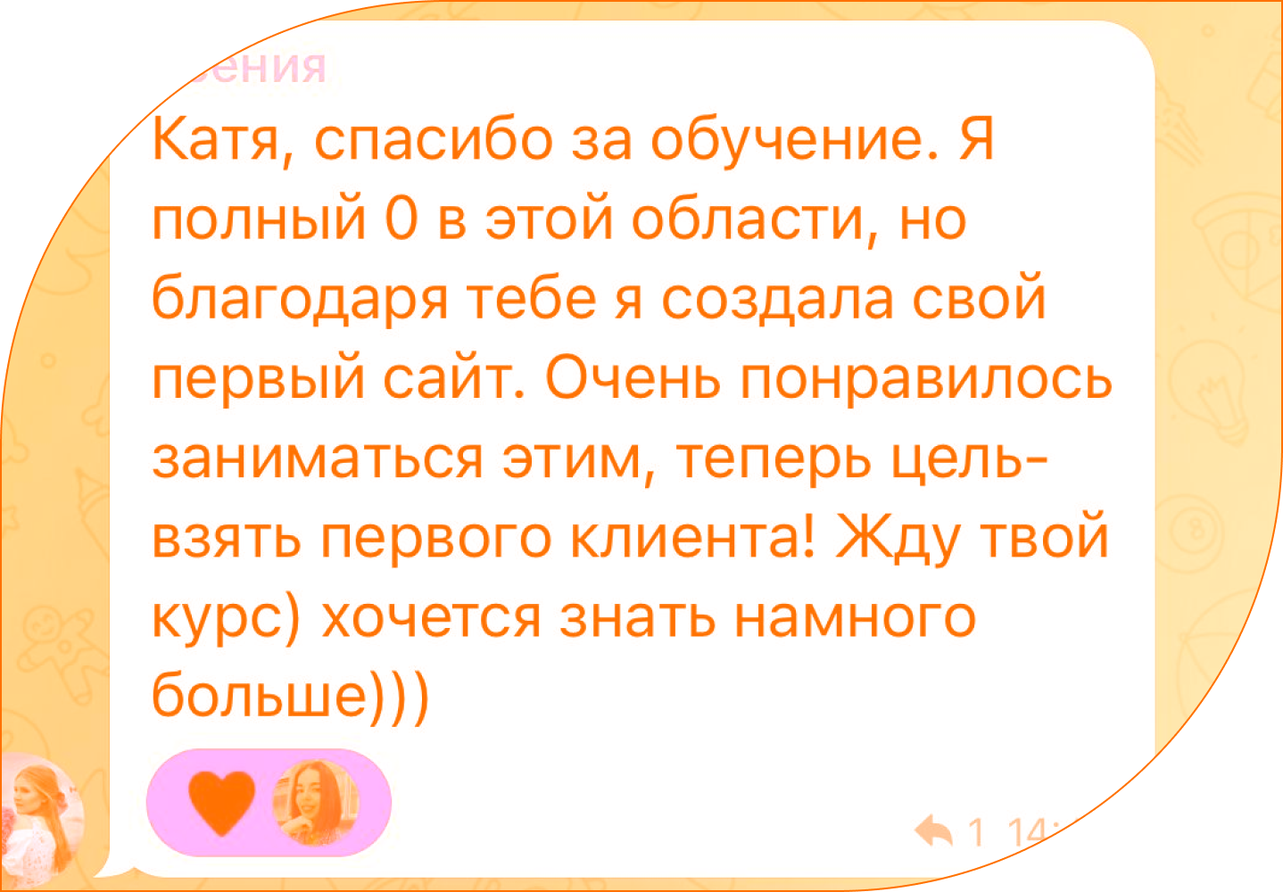 Да, я за честность. Если ты не уверен в том, подойдет тебе курс или нет, то можешь сначала написать мне в телегу @Katerina_webdesign Я проконсультирую и ты уже решишь покупать курс или нет.