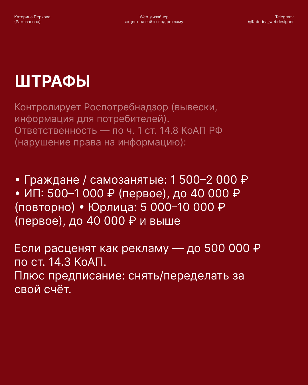 Если нужно переделать сайт, вывеску или меню под закон — пишите мне!